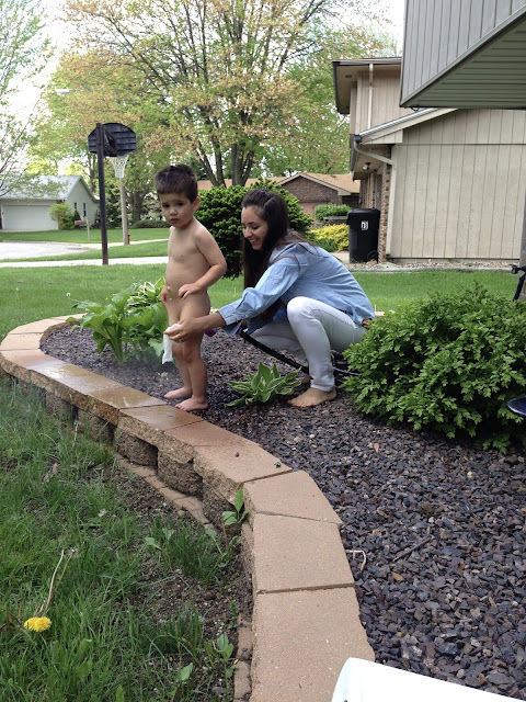 While over playing outside at friends' this morning, Levi managed to lock us all out of their house. With him inside. After we coaxed him out (twice) and removed a door (2 moms + almost 9 kids) we gained entry. Then shortly after he had to literally be hosed down in their front yard (I won't elaborate on the whys because my stomach is too weak.)